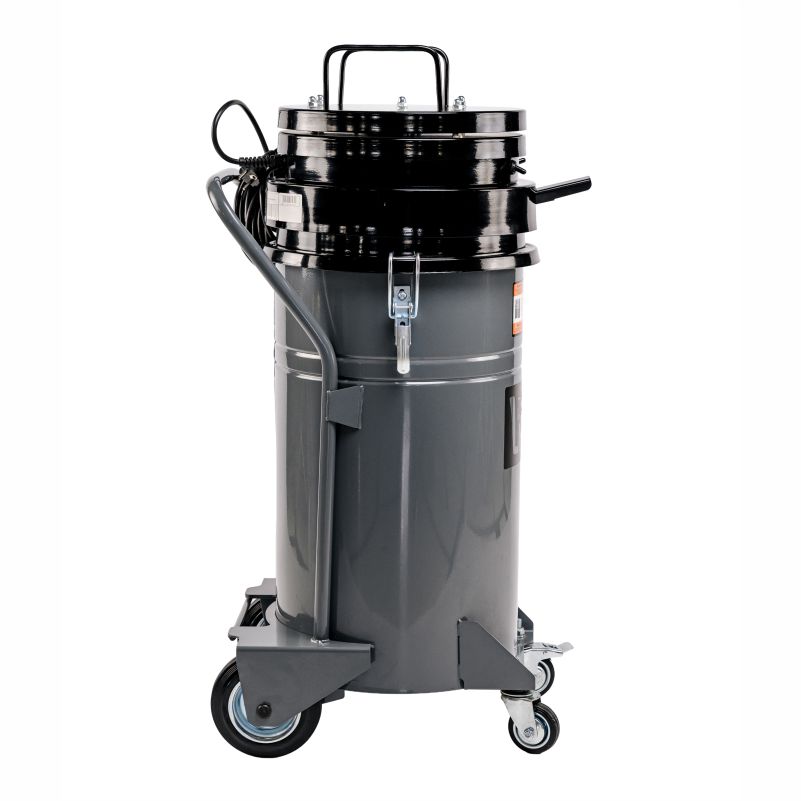 Расширенное шасси и выносная ручка для устойчивости и маневренности. Передние поворотные колеса с тормозом для фиксации пылесоса на строительной̆ площадке.